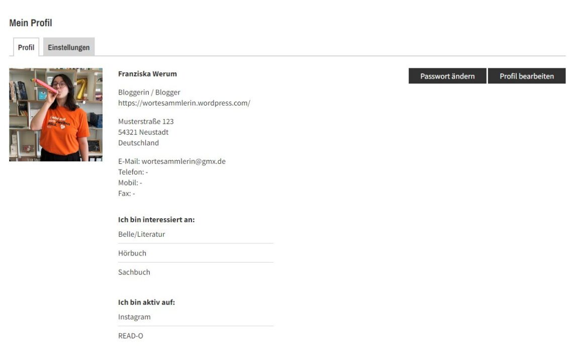 Klicken Sie auf Profil bearbeiten, sehen Sie alle Ihre Profildaten ein.