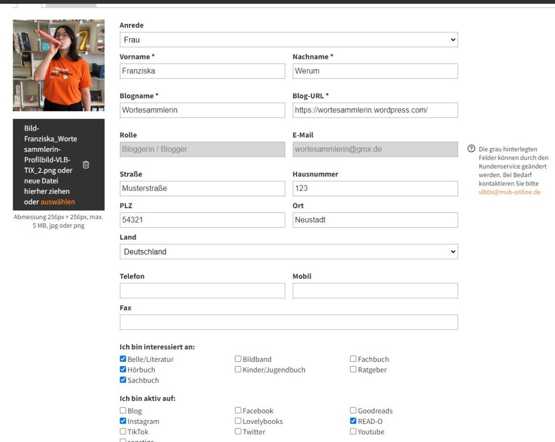 Die weißen Felder und das Profilbild können Sie jederzeit anpassen. Grau hinterlegte Felder können nur durch den Kundenservice geändert werden. Schreiben Sie in diesem Fall eine E-Mail an vlbtix@mvb-online.