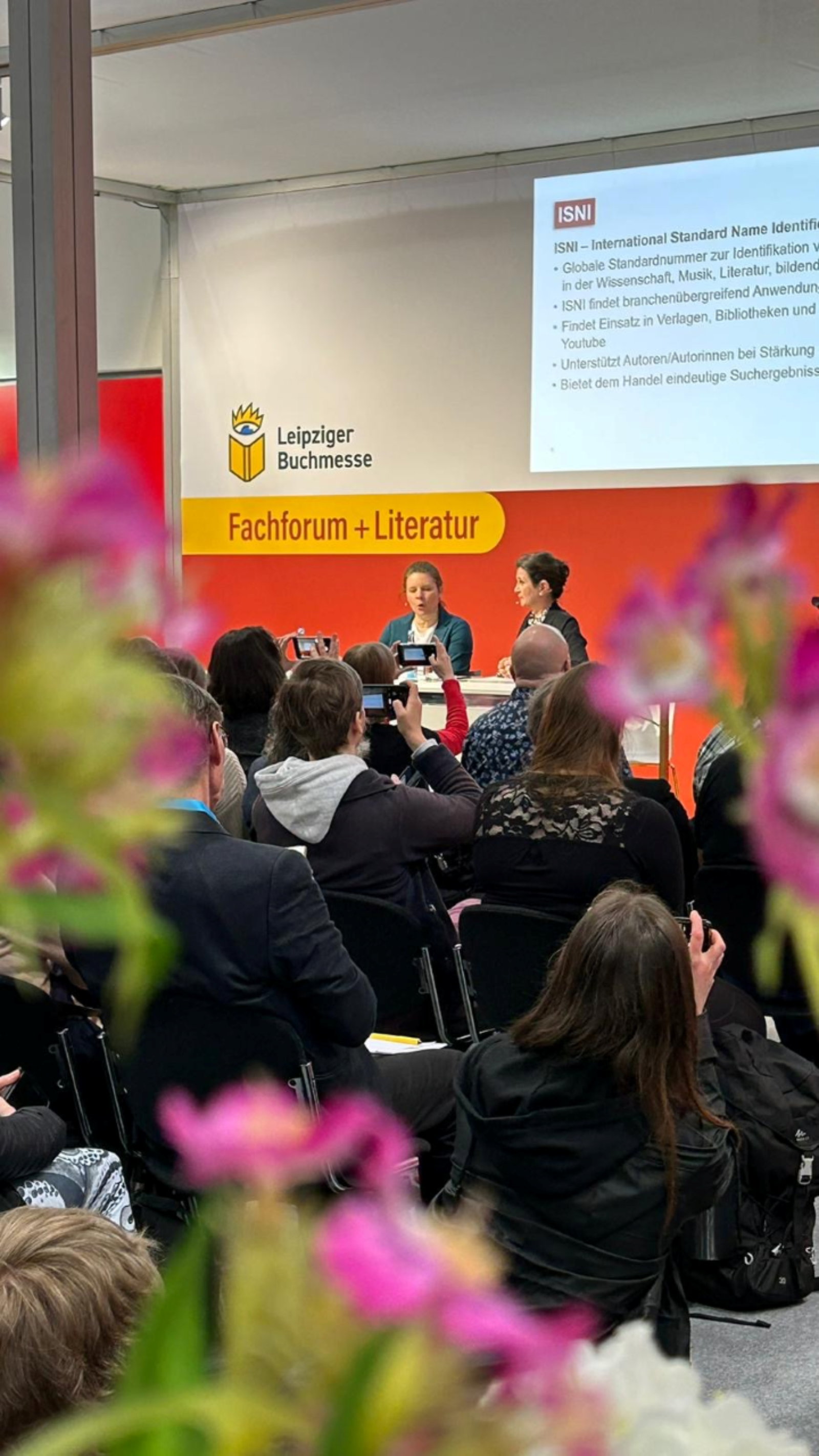 Monica Wellmann präsentierte in großer Runde und vor Publikum von den Vorteilen der digitalen Vorschau. Klimabewusstes Buchhandeln rückte so wieder mehr in den Vordergrund. - All die Termine und spontanen Begegnungen durch das Team VLB & VLB-TIX mit Ihnen vor Ort!