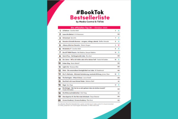 Die #BookTok Community zählt zu den engagiertesten der Plattform TikTok mit großem Einfluss auf die Bestsellerlisten und Büchertische in Buchhandlungen. Die Vorschau stellt einmal im Monat die erfolgreichsten Buchtitel der Community vor. Sie setzt sich zusammen aus den Daten von TikTok und den Verkaufszahlen von Media Control. Seit März 2024 wird die #BookTok Bestsellerliste um zwei erfolgreiche Genres erweitert, Top 10 Deutschland Non-Fiction und Top 10 Deutschland Young Adult. Seit Oktober 2025 veröffentlichten TikTok und Media Control die #BookTok-Bestsellerliste New Adult anstatt Non Fiction. Außerdem gibt es neu eine monatlich wechselnde Spezial-Liste. Genaueres hier: So funktionieren die #BookTok-Bestsellerlisten.